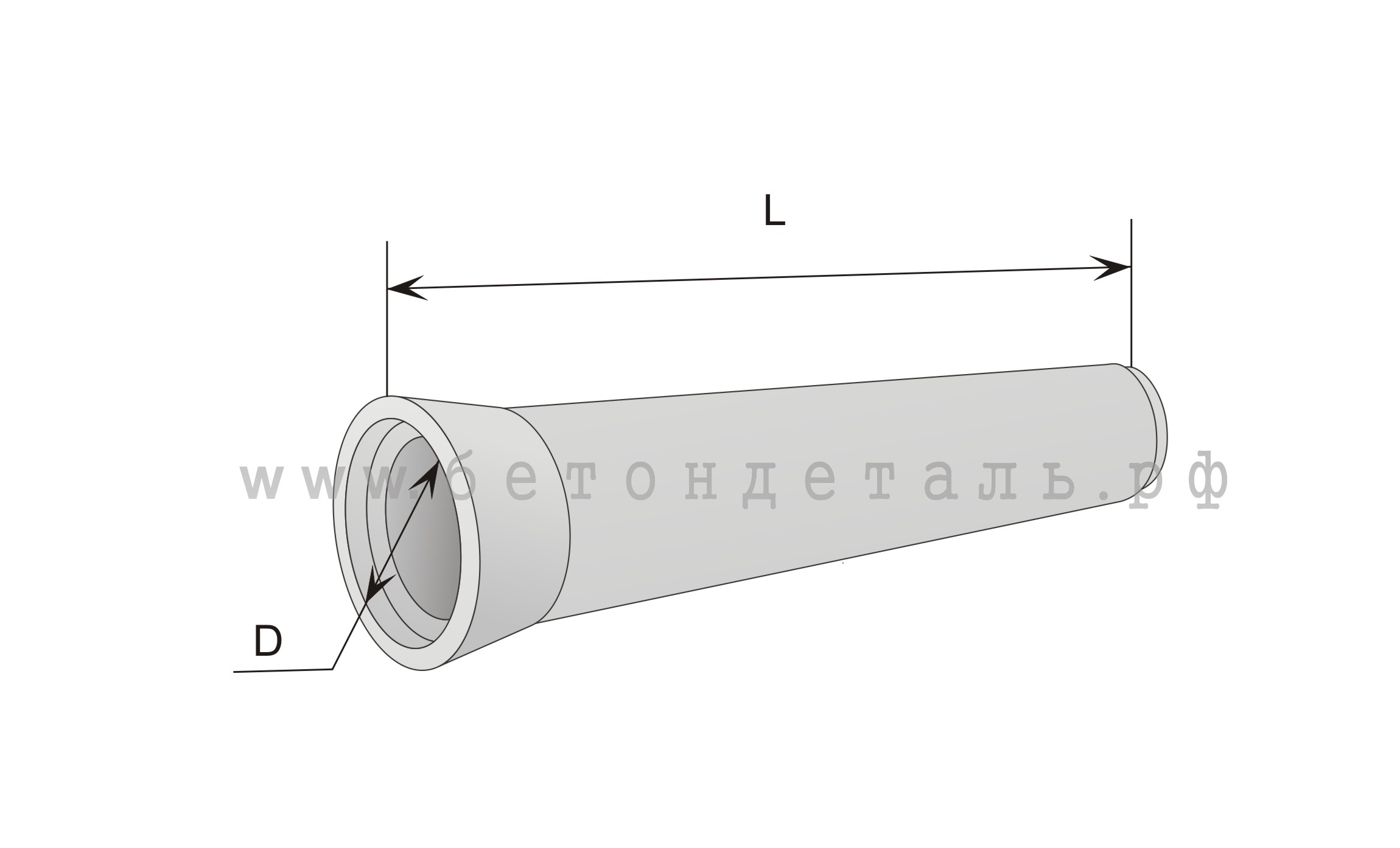 Обозначение, информация в шифре маркировки труб ЗКП 2.200 соответствует: первые буквы «ЗКП» означают «звено круглое с плоским опиранием», первые цифры «2» - условное обозначение основных параметров по Серии – диаметр отверстия 1,0 (один) метр, толщина стенки 12 см, окончательные цифры «200» - длина звена в сантиметрах, т.е. 200 см или два метра.