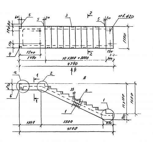 ЛМП 60.11.17 Лестничные марши ребристые с полуплощадками по серии 1.050.9-4.93.