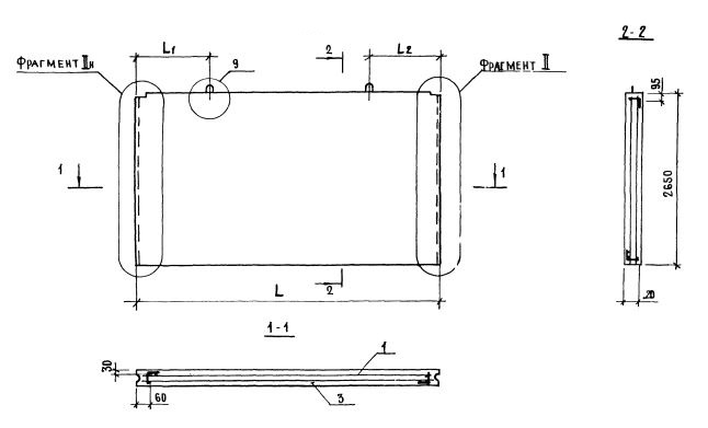 2,1 - индексы, характеризующие положение панелей в плане здания и их конструктивные особенности ( 2 - панели продольных стен; 1 - панель без проема).